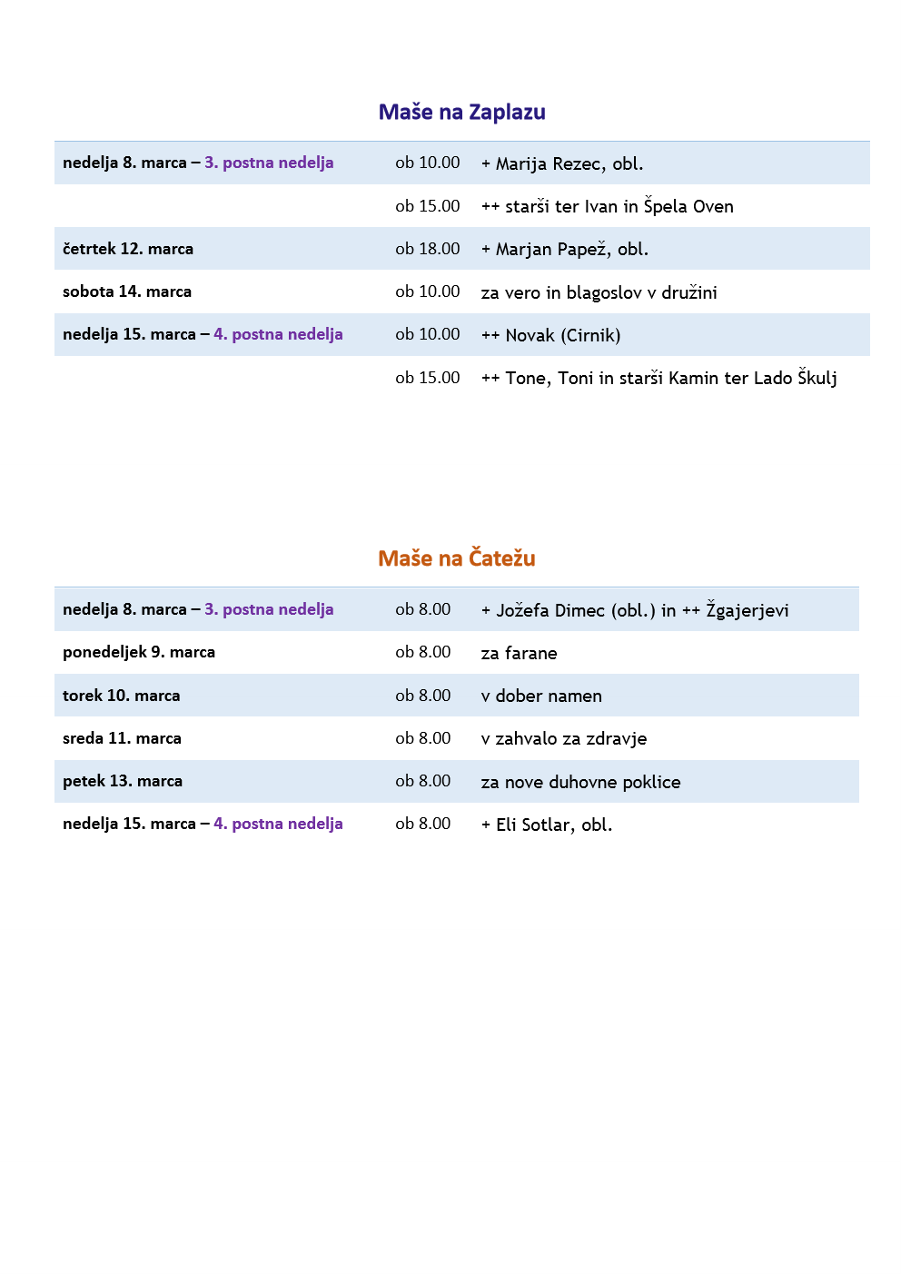 Oznanila od 8. do 15. marca 2026