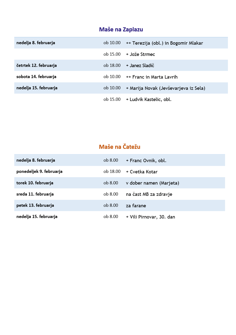 Oznanila od 1. do 8. februarja 2026