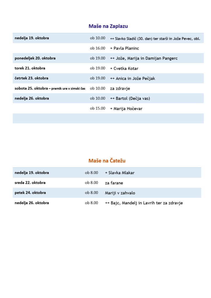 Oznanila od 12. do 19. oktobra 2025