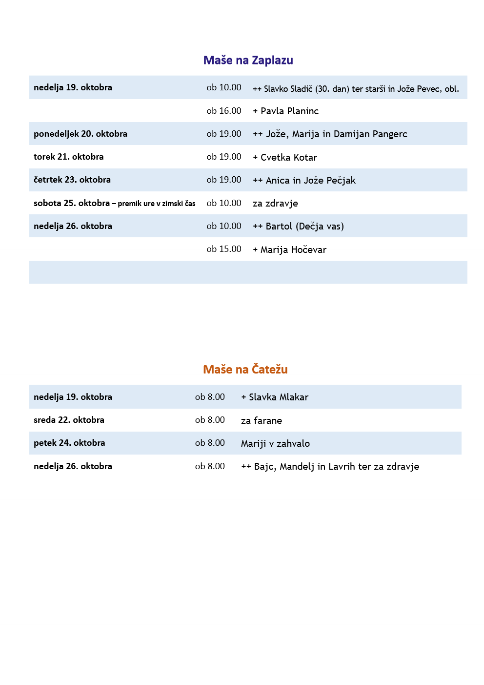 Oznanila od 19. do 26. oktobra 2025