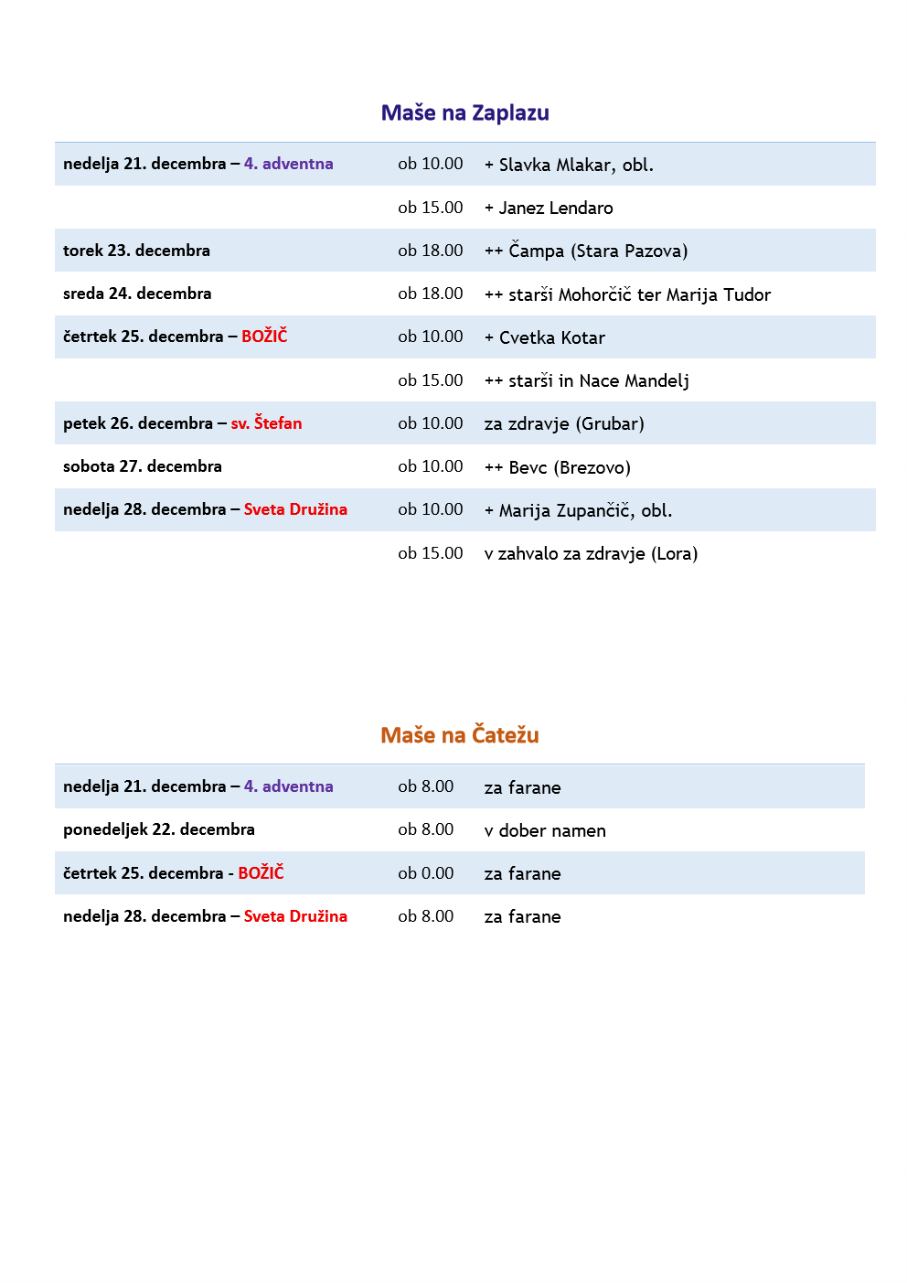 Oznanila od 14. do 21 decembra