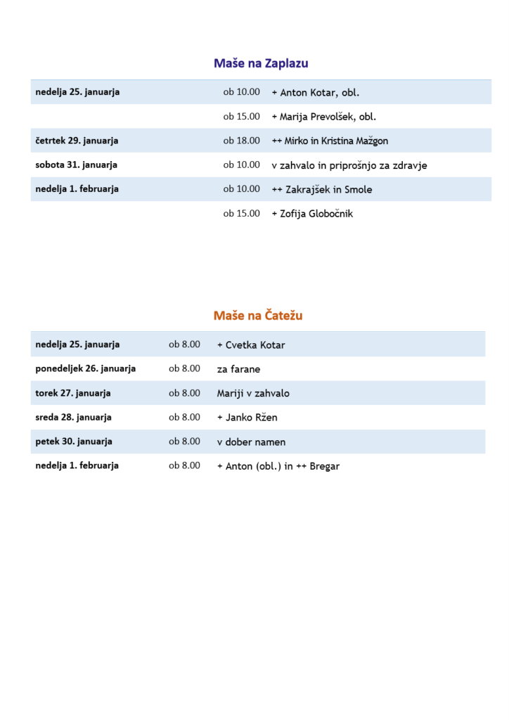 Oznanila od 25. januarja do 1. februarja 2026